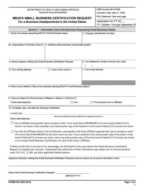 Fda Form 3602. This is the mdufa foreign small business certification request for a. To complete the appropriate form: