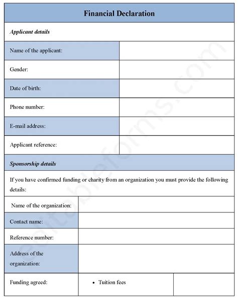 Financial Declaration Form. Use this form to agree to provide financial support to a beneficiary of. Web completing a financial declaration form if you are required to complete a financial declaration you must complete all of it and.